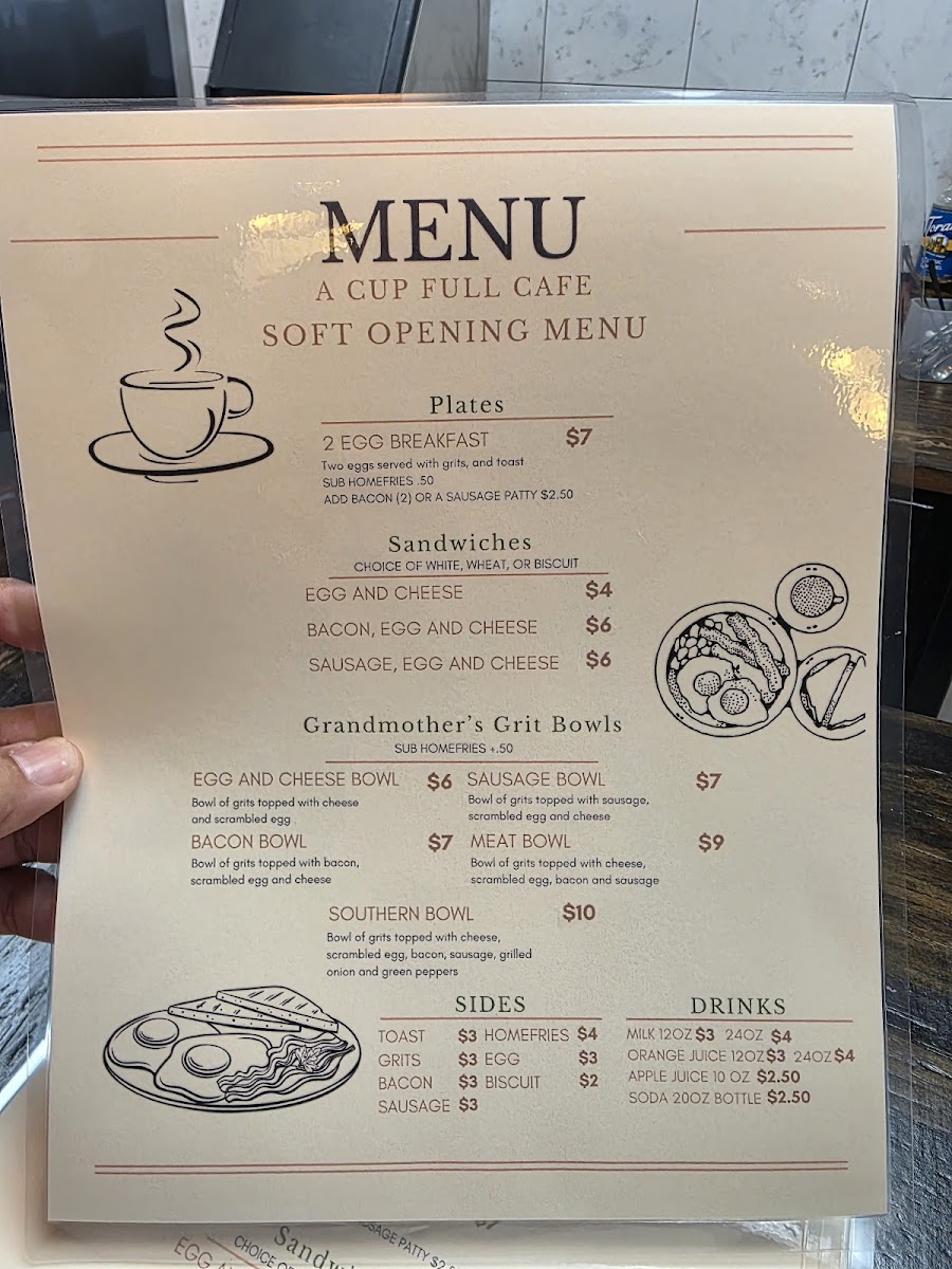 A Cup Full Cafe Menu